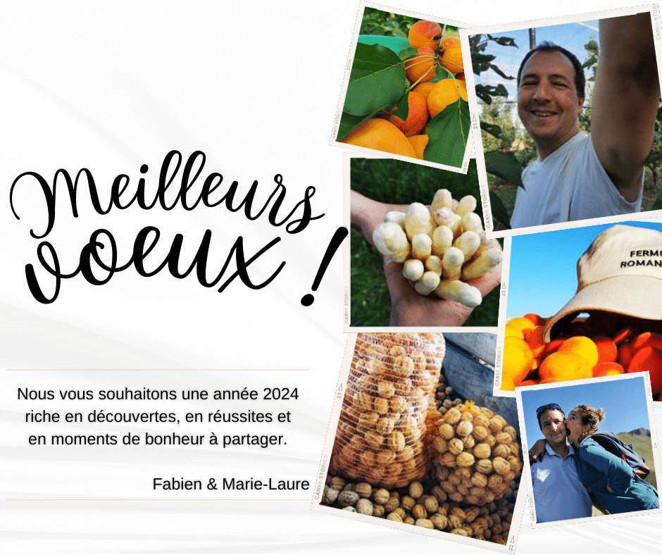 Que 2024 soit une année où l’abricot, l’asperge et la noix trouvent leur place dans chacun de vos jours, apportant une touche de saveur à votre quotidien. Que vos journées soient aussi rayonnantes qu’un champ d’abricot et que vos nuits soient aussi paisibles qu’un agneau dormant dans nos noyers.