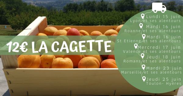 Cette année, nous vous proposons la cagette consignée… Pour la première livraison, la consigne s’élève à 1€ . Ensuite, vous pouvez ramener votre cagette consignée en échange d’une cagette pleine d’abricots. Lors des prochaines livraisons, vous ne paierez donc que les abricots !