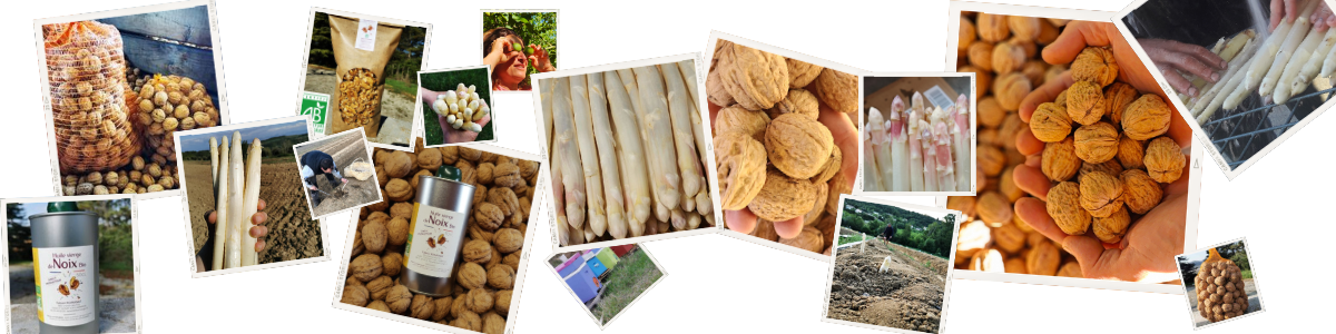 Nos noix bio et nos asperges sont produites et récoltées à la ferme.