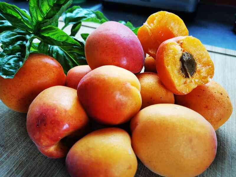 1.Coupez 6 abricots en 8 quartiers et mélangez-les avec 100 g de feta